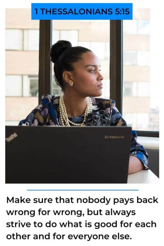 Do you seek after the good of others? We’re told in this verse that we need to make sure we never repay evil for evil. Regardless of what happens to us, we should look for the good in one another. Over the years, we might interpret that as taking part in certain behaviors. But what is good for one another and good for everyone may relate to how you do your job, or how you volunteer in your community. It may also mean how you look out for others. Ask God to show you how to serve others for their good, which is another way of saying, we’re all in ministry.